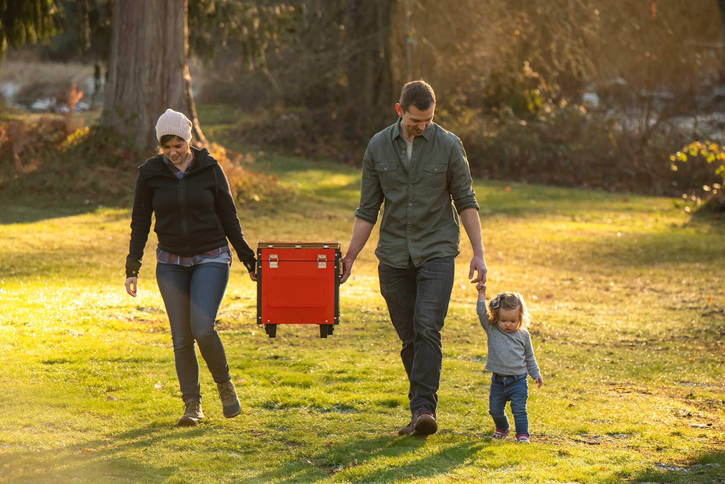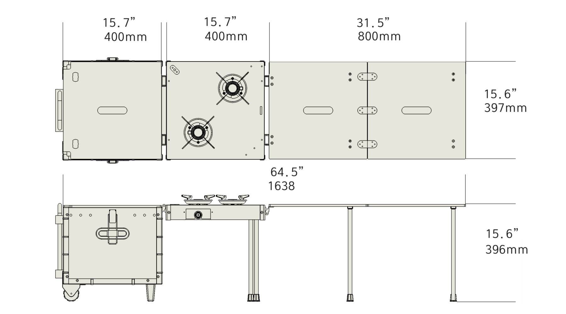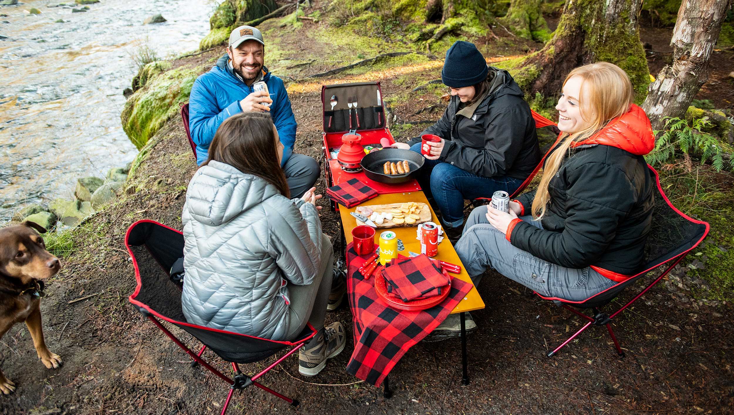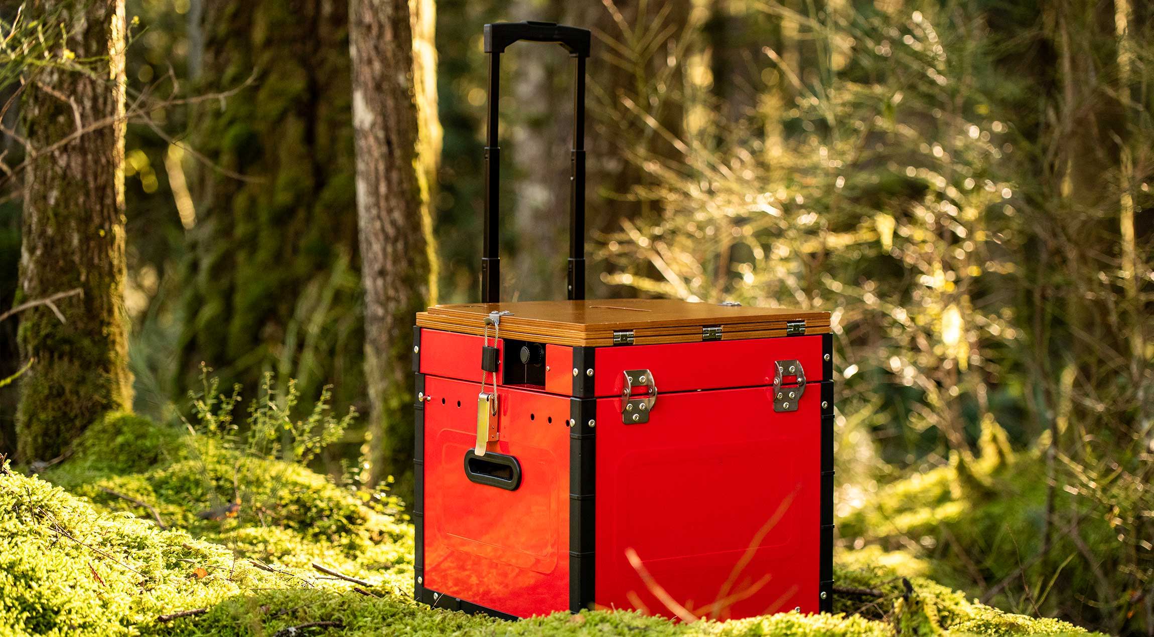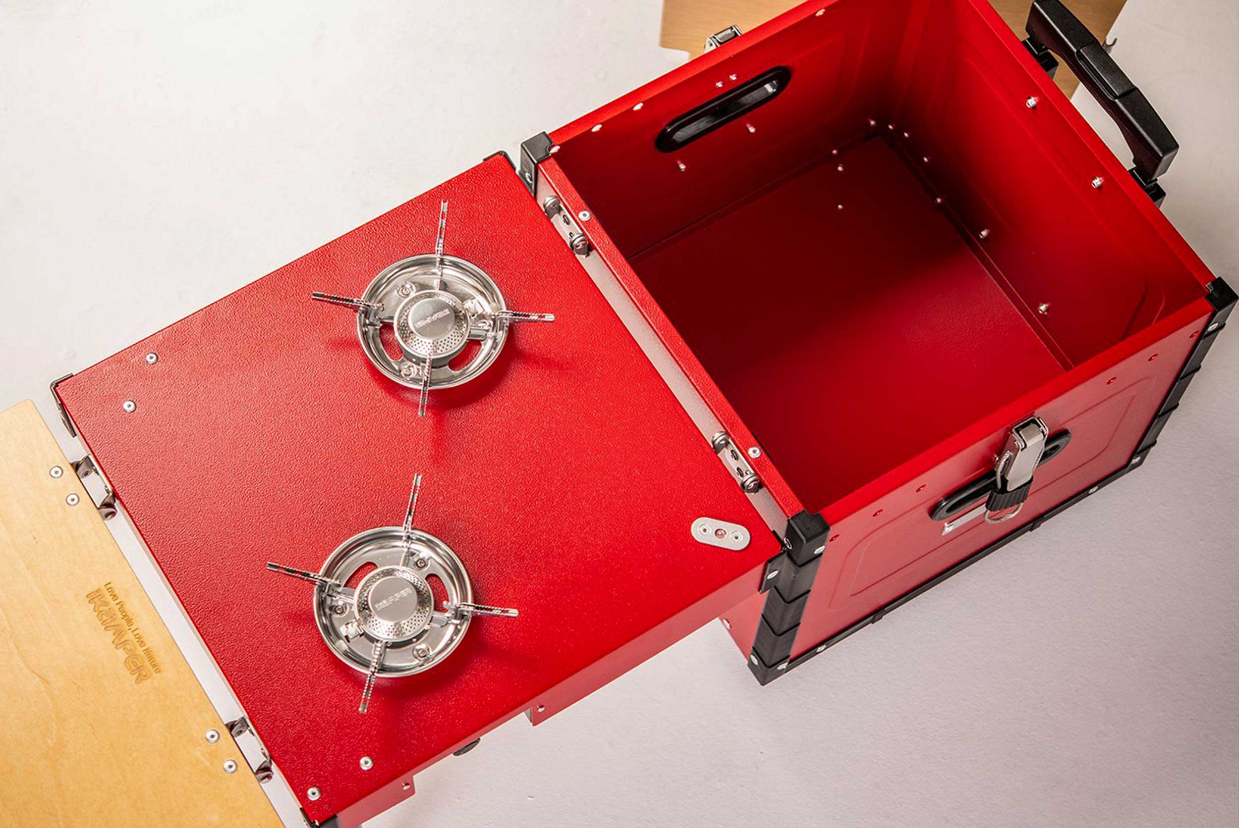 Tất cả các nhu cầu nhà bếp ngoài trời của bạn (bàn, bếp, đồ nấu nướng, đồ dùng, thức ăn và đồ uống) đều nằm gọn trong một hộp nhôm.
