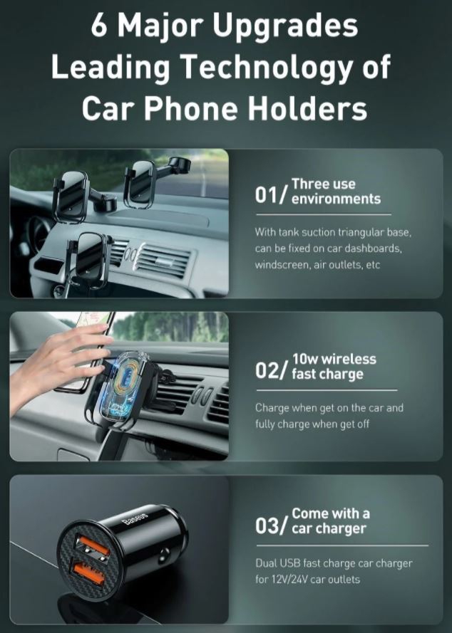 -Việc sử dụng điện thoại trên các chuyến đi đã quá đổi quen thuộc với các tài xế và gia đình, các dụng cụ kẹp đỡ điện thoại đã quá đỗi thân quen, nhưng việc trải nghiệm lại còn tùy thuộc vào các thiết bị hỗ trợ, Bộ giá đỡ điện thoại gắn kính hoặc táp lô tích hợp sạc nhanh không dây dùng trên xe hơi Baseus (Rock-Solid Electric Holde) sẽ mang lại cho bạn trải nghiệm tốt nhất qua mỗi chuyến đi.