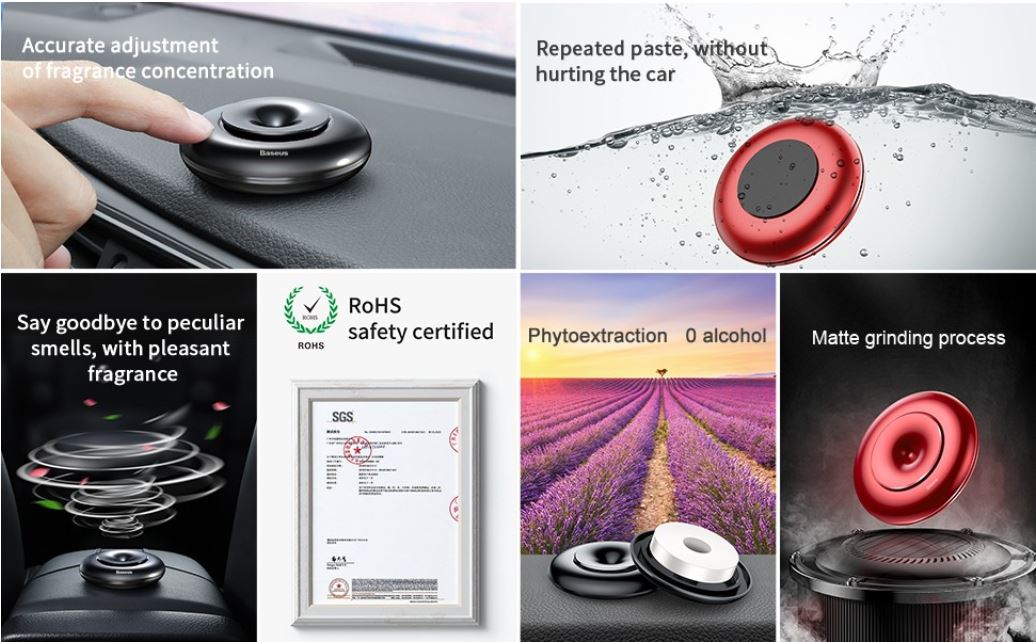Tính năng cơ bản sản phẩm Bộ khuếch tán kèm nước hoa khô dùng cho xe hơi Baseus Vortex Car Air Freshener Holder LV513 (Metal Aromatherapy, with 4PCS Solid Perfumes )