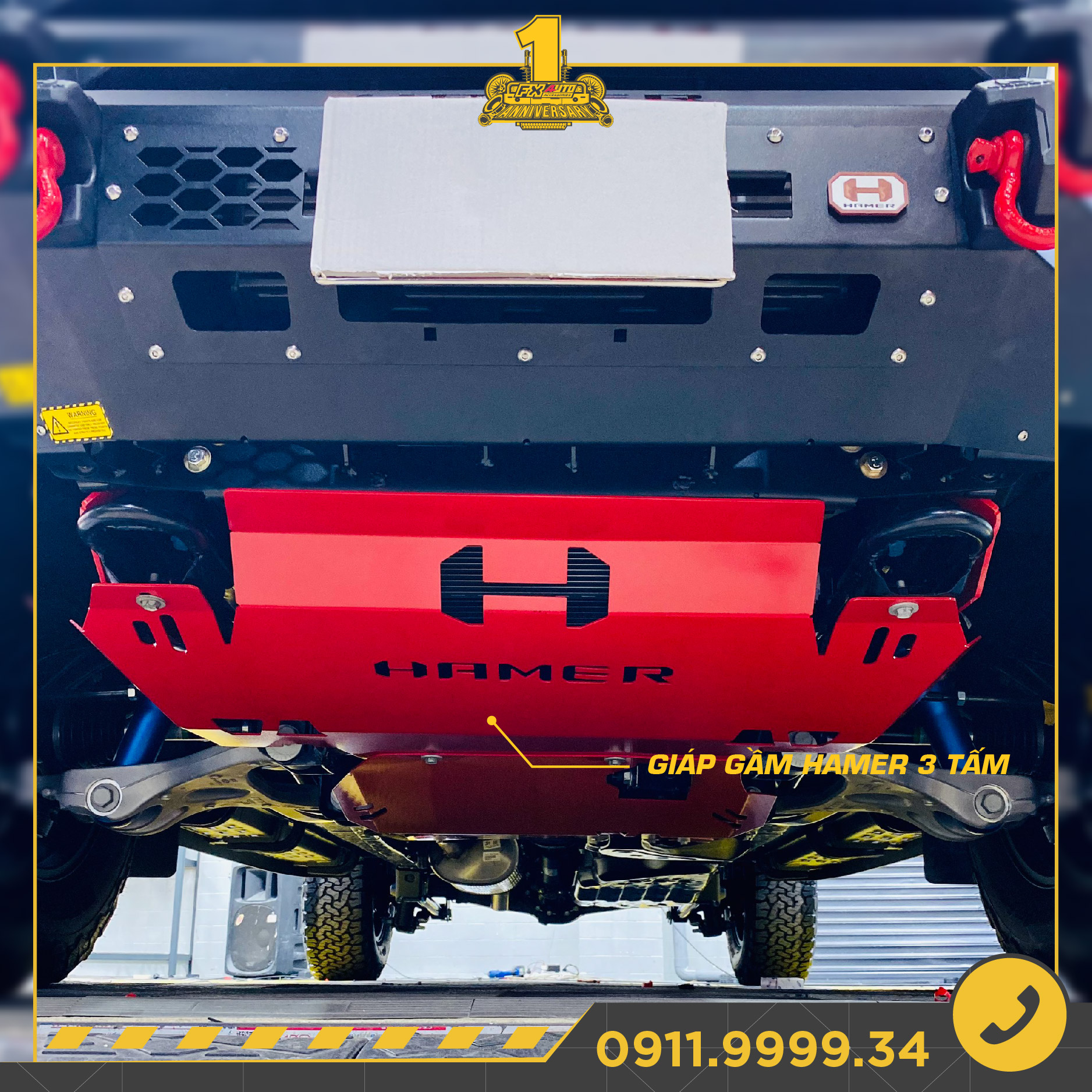 Giáp bảo vệ gầm Hamer 3 tấm độ cho Ford Raptor tấm giúp cho xe tránh bị hư hại các bộ phận dưới gầm xe hay bình dầu khi đi qua các địa hình khó. Ngoài ra còn mang tính thời trang giúp xe Raptor độ đẹp hơn.