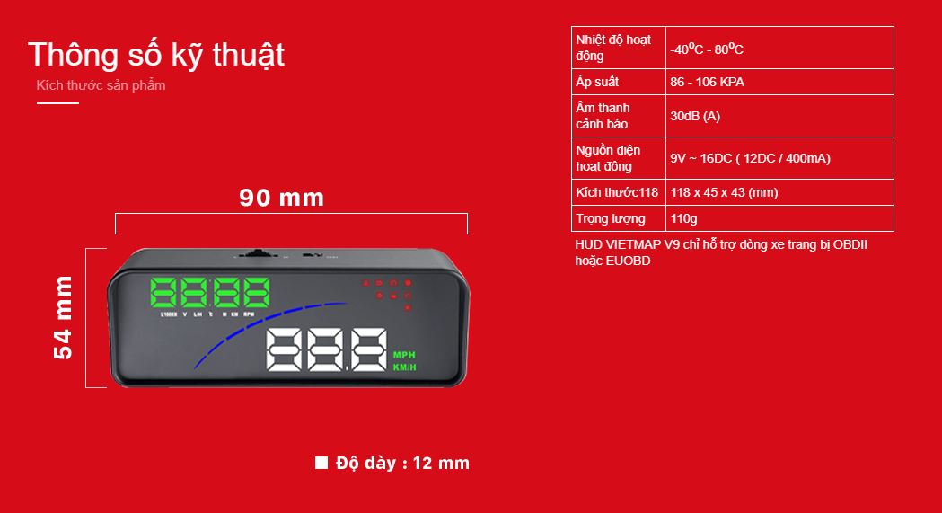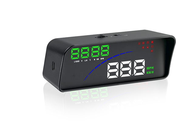 Màn hình hiển thị thông tin trên kính lái V9 với thiết kế đơn giản, dễ theo dõi, dễ quan sát giúp tập trung lái xe, và kiểm soát tốc độ tốt hơn.