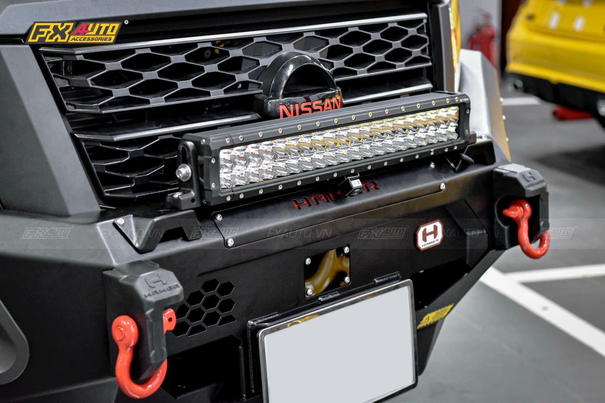 Một trong những điểm nhấn của Nissan Navara Pro4X là cản trước và sau thương hiệu Hamer. Đây là một thương hiệu nổi tiếng về phụ kiện xe bán tải, chuyên sản xuất các loại: cản va chạm, cản lùi, cản kéo và cản gắn đồ. Các cản của Hamer được làm từ thép chất lượng cao, có độ bền và khả năng chịu lực tốt. Các cản còn được thiết kế theo phong cách off-road, mang lại vẻ ngoài hầm hố và mạnh mẽ cho xe.